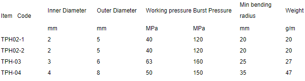 Pressure Testing Hose Recommended For:the nominal diameter of miniature high-pressure hose series HF are 2mm and 3mm. With a maximum working pressure 64Mpa, the miniature high-pressure hose is used in hydraulic systems for testing pressure and conducting the fluid medium. The miniature high-pressure hose assembly series HF is used in conjunction with the couplings.